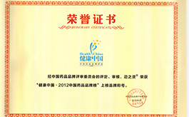 • 2012中國藥品品牌榜上榜品牌稱號